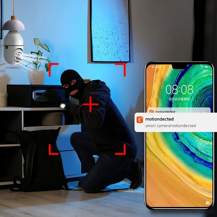 The camera is designed to fit into a standard E27 light bulb socket, making installation incredibly simple. No drilling, wiring, or complex setup is required—just screw it in like a regular bulb. Perfect for renters or anyone seeking a non-invasive solution. It blends seamlessly into your existing lighting fixtures for discreet surveillance.